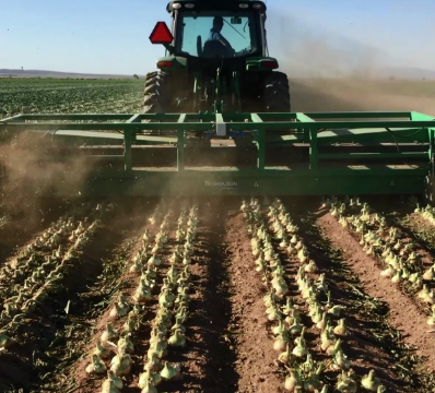 Nicholson Machinery Windrowers are designed to lift onions cleanly, remove soil from the roots, and gently place the crop back onto the ground in a uniform windrow.
